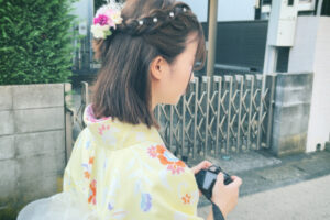どのスタイルも着物に合わせてドライフラワーや組紐アクセを取り入れると一気にトレンド感UP!2月の浅草で着物と髪型どちらも春待ちコーデを楽しんでみてね。
