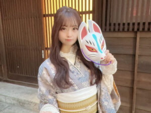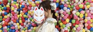 浅草の着物コーデの定番になりつつあるお面。お面の種類もキツネ・猫を中心にカラーラインナップも豊富。着物との相性も良くて写真映え間違いなしです。