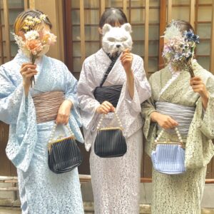 もちろん着物の襟や帯、バッグの種類も豊富な中からお選びいただけるので、お気に入りの組み合わせを見つけてみてください。