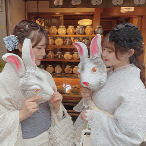 レース着物と相性の良いうさぎのお面もおすすめ。