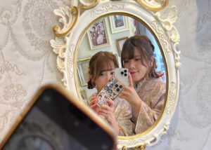 浅草の着物レンタルでは追加料金がかかりがちなレース着物やアンティーク着物も令和服なら追加料金なしで選び放題。髪飾りも選び放題なので、親子で楽しみながらコーデも決められます。浅草ならではの情緒ある街並みと、レースやレトロデザインの着物は相性抜群です。