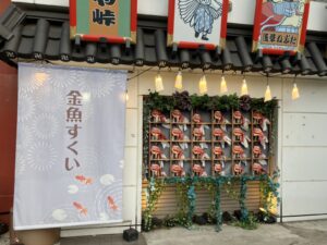 西参道商店街へ。1年中お祭り気分が味わえるこちらの商店街はアーケード付きなので、雨の日でも安心。中には金魚すくいができる「浅草きんぎょ」や射的ができる「浅草射的」があって、年中、お祭りモード。レトロで風情のある商店街はどこか懐かしく、着物との相性も良いので大変おすすめの場所です。